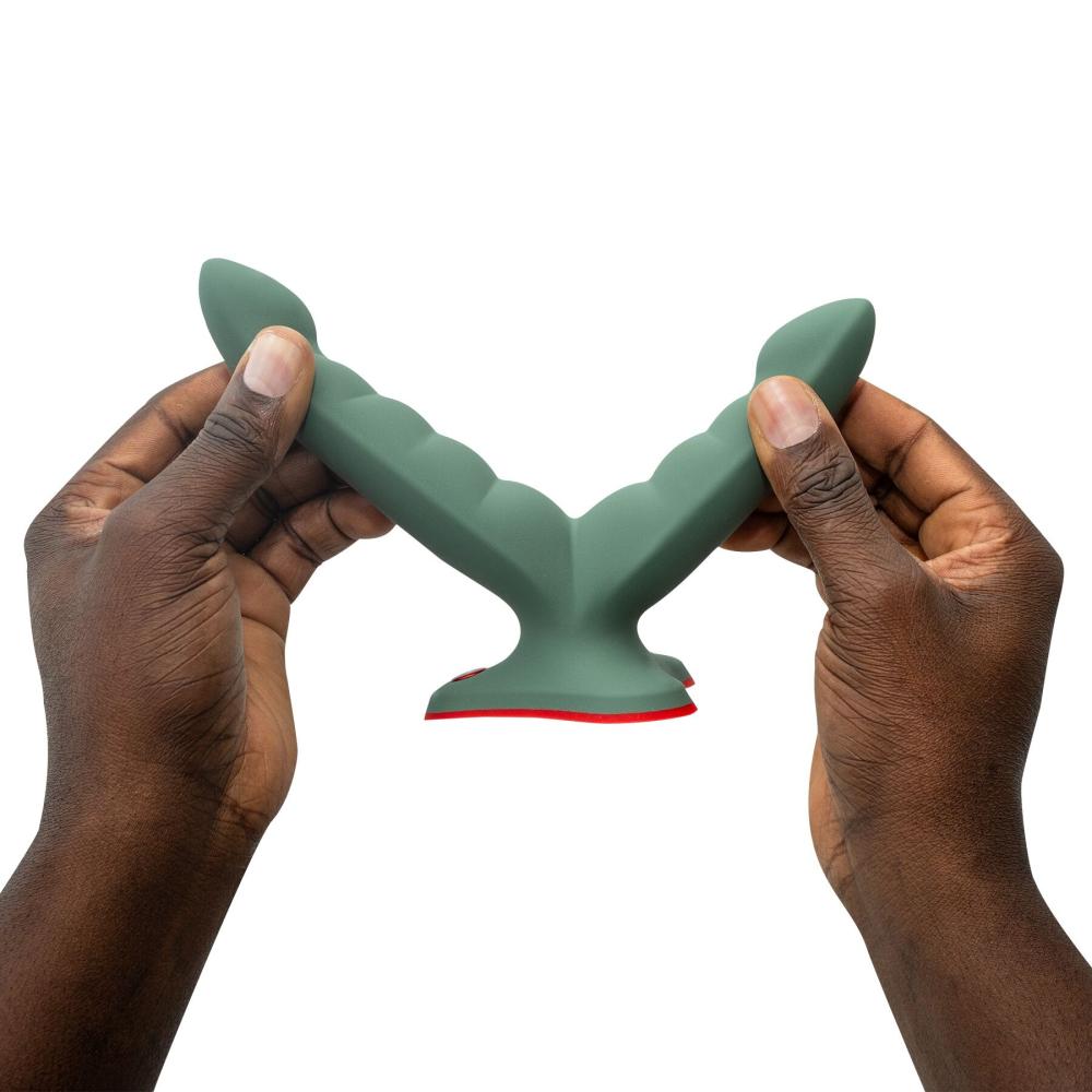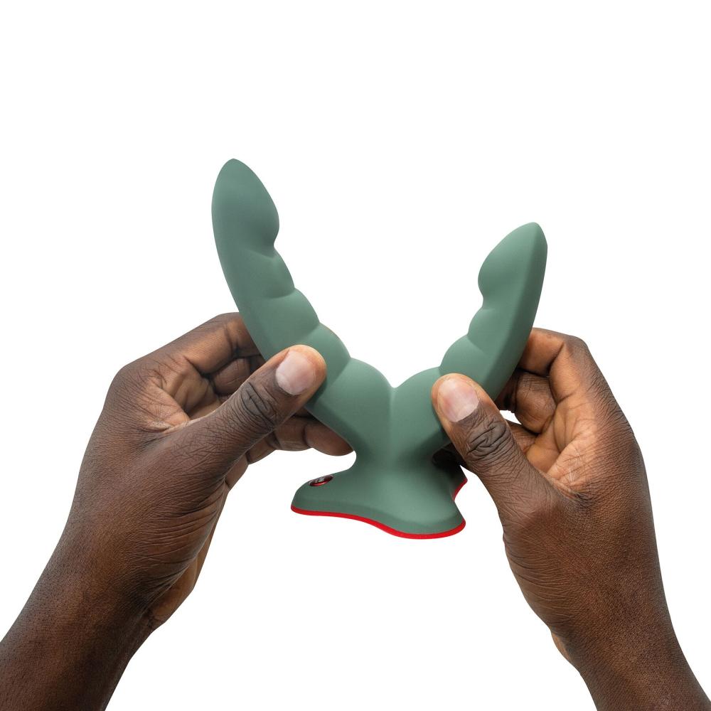 —Двойной фаллоимитатор Fun Factory RYDE wild olive, гибкие стволы, присоска